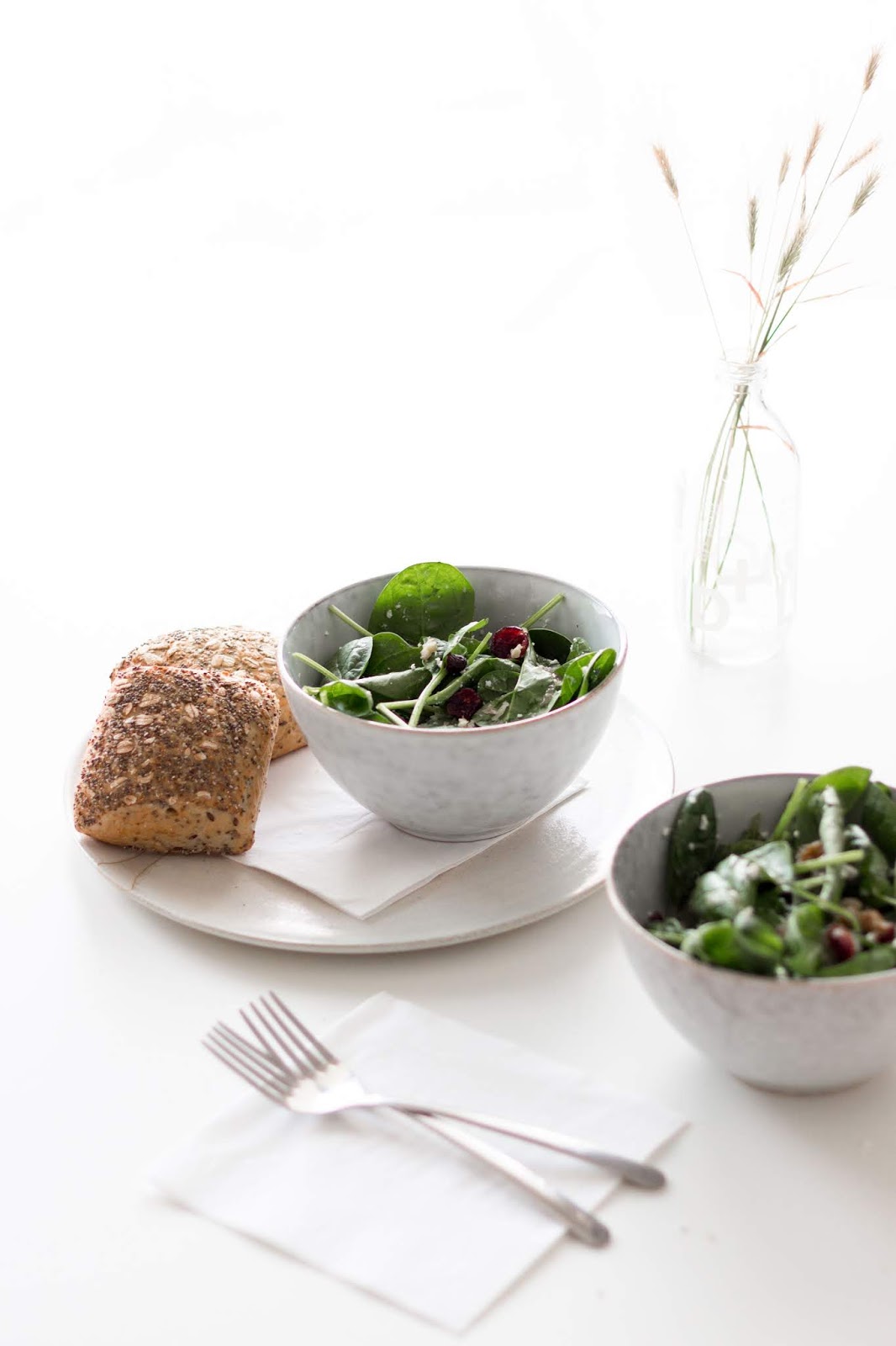 Vor ein paar Wochen bei einem Kurztrip nach Würzburg habe ich im Café Fred einen leckeren Salat mit Babyspinat, Ziegenkäse und Cranberries gegessen. Da das Rezept und die Kombination der einzelnen Zutaten sehr fein geschmeckt hat, musste ich diesen Salat zu Hause selber “nachmachen”. Das ist eines der Aspekte, warum ich es liebe, ab und zu in Restaurants und Cafés zu essen, denn so kann das eigene vorhandene Repertoire an Gerichten durch neue, bisher unbekannte Ideen erweitert werden. Der Babyspinat mit Ziegenkäse, Cranberries und Honig harmoniert in dieser Kombination sehr gut und stellt eine kleine, leichte und gesunde Möglichkeit für einen Lunch oder Abendessen im Sommer dar.